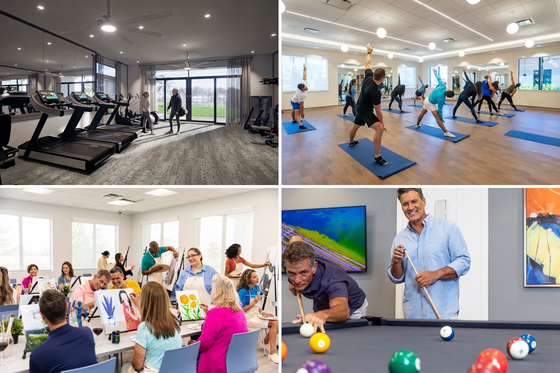 The Community Centers at Valencia Harbor are the hub of activity where friends and neighbors can stay active, socialize, and enjoy the best of 55+ living. They will feature everything from a 24/7 fitness studio and outdoor exercise spaces to arts and crafts rooms, a sports lounge, and plenty of inviting areas to gather. Whether you’re joining a fitness class, playing a round of pool, or relaxing on the patio lounge, the Community Centers offer endless ways to connect, unwind, and make the most of every day at Valencia Harbor.