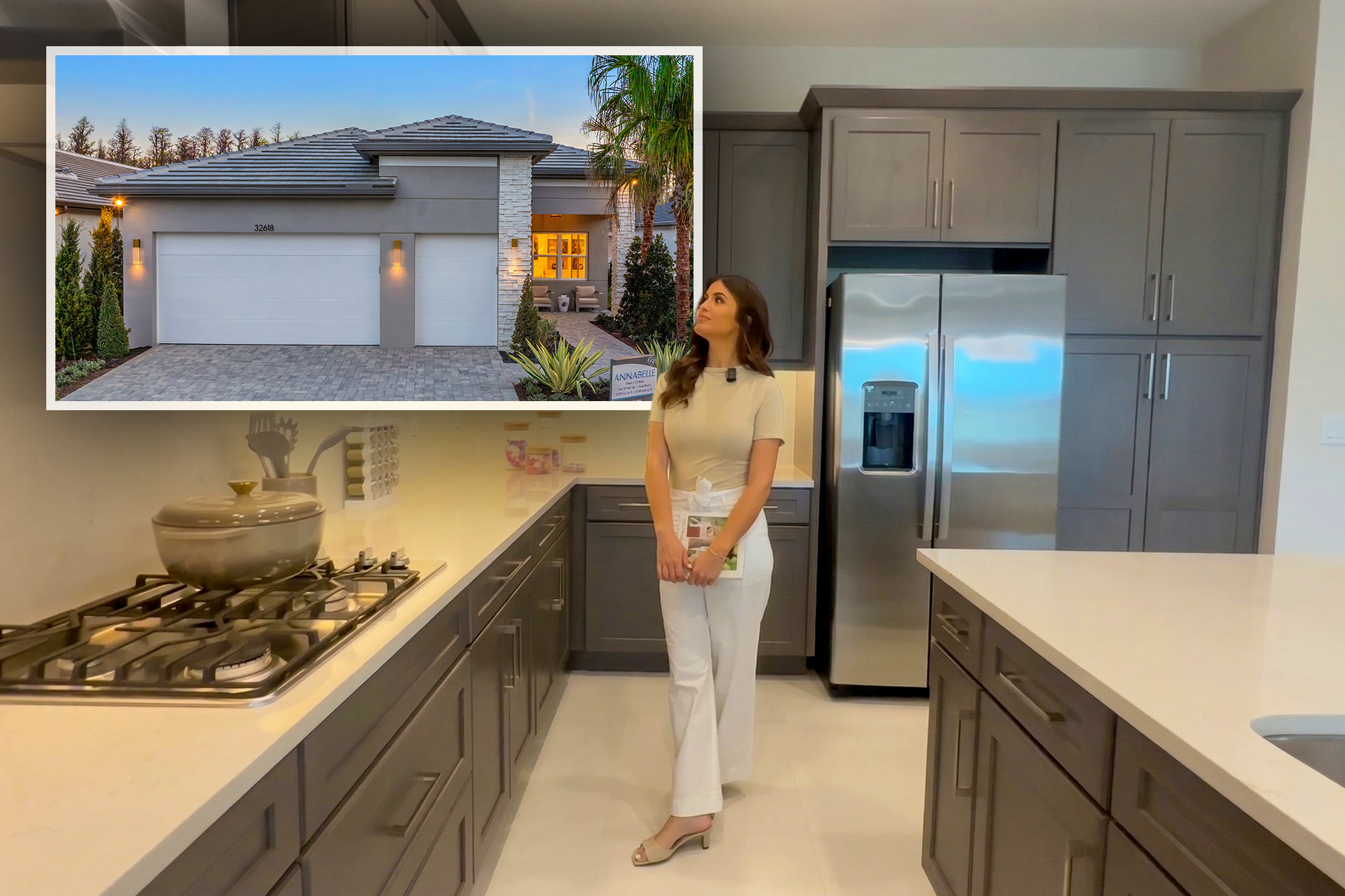 At Valencia Ridge, you can enjoy the ease of moving into a beautifully furnished home during the Spring Sales Event. Take advantage of savings of over $69,000* on the move-in ready Annabelle, which includes FREE furniture, designer lighting, and window treatments! The Annabelle features 3 bedrooms, 2.5 bathrooms, den/optional 4th bedroom, great room, golf cart garage/storage, 2-car garage, and 2,209 a/c sq. ft. With 13 ft. ceilings in the foyer, a versatile den, open concept living area, and covered patio, this home has all the space you need. The best part is you can move in today and start enjoying Tampa's best 55+ lifestyle with the Community Center now open!